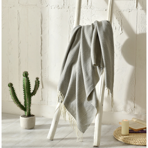 Nydelig strikket pledd i ulike gråtoner