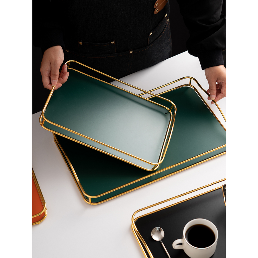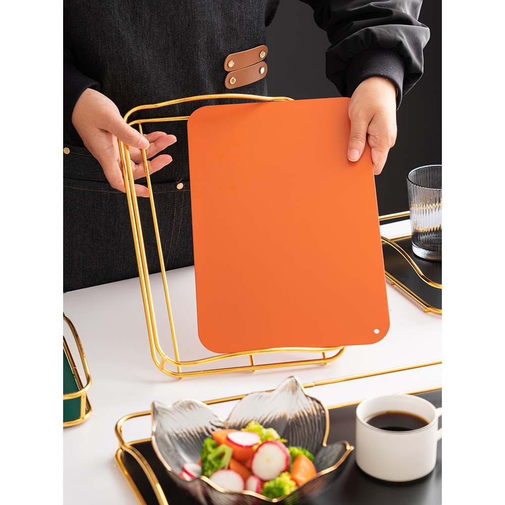 Stilig serveringsbrett med gullkant