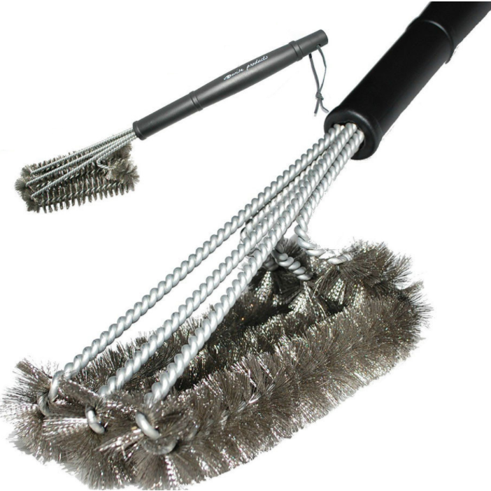 Bli kvitt det vanskelige fettet og rester som har brent seg fast med vår trippelhodede rengjøringsbørste for grill. Hold grillen din ren med en grillbørste av rustfritt stål, og sørg for at vedlikeholdet av grillen din er enkel.